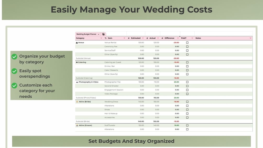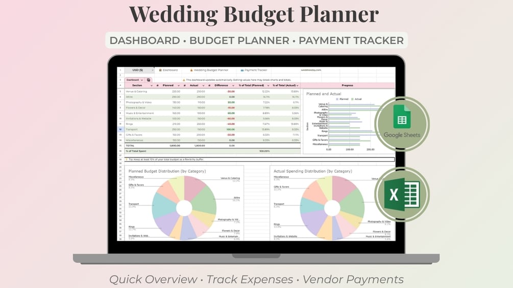 Wedding Budget Planner Spreadsheet (Simple, Google Sheets & Excel)