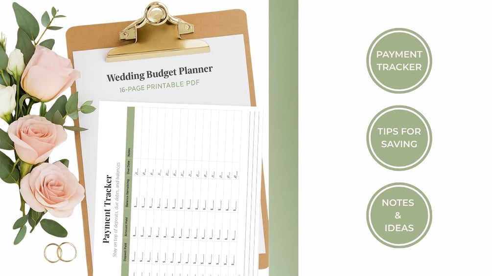 Track every expense — from venue and catering to flowers, attire, and music. Includes a payment tracker and quick-start guide.